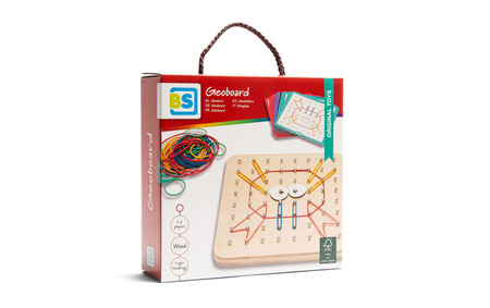 Geoplan jest znaną i lubianą grą przez dzieci i ich rodziców. Na dużej, drewnianej tablicy 20 x 20 cm umieszczono bolce w równych odstępach. Przy pomocy kolorowych gumeczek dzieci rozpinają gumki na bolcach tablicy. Tworzą kształty i obrazy. Mogą korzystac z kart pracy albo tworzyć dowolnie. Młodsze dzieci, które jeszcze nie będą potrafiły odwzorować wzoru z karty pracy, mogą dowolnie rozpinać gumki.