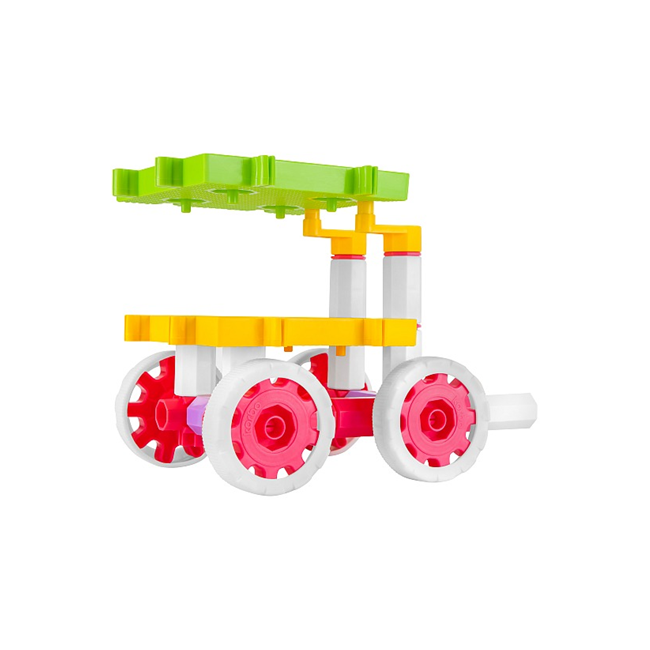 Poszczególne zestawy różnią się kolorem, ilością elementów m.in. kół i podstaw, na których tworzy się ruchome budowle.