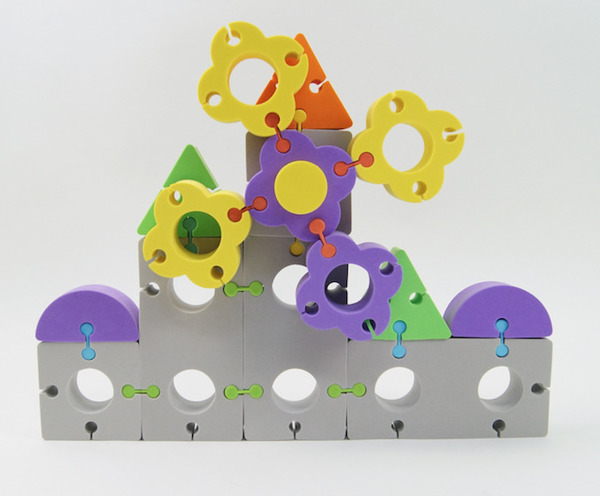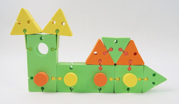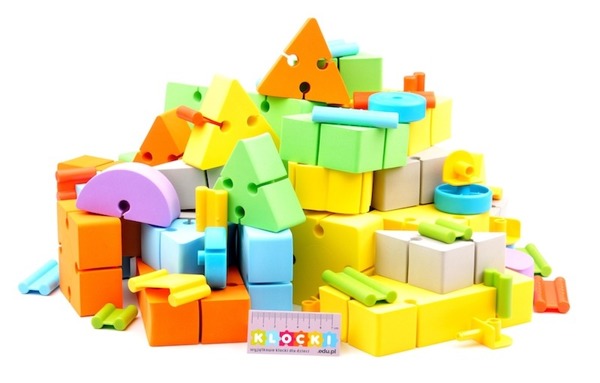 Bezpieczne klocki wykonane z miłej w dotyku pianki. Klocki posiadają elastyczne plastikowe łączniki umożliwiające łatwe łączenie poszczególnych elementów. W zestawie 24 stronnicowa instrukcja z przykładowymi modelami. Opakowanie – pudełko plastikowe.