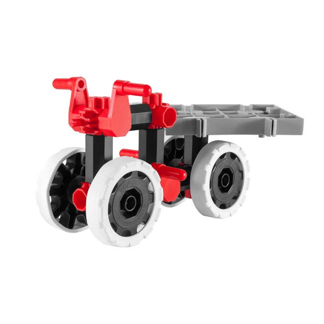 Zestaw klocków Korbo Edu Car 400 zawiera 400 elementów, w tym aż 56 opon, które pozwalają na stworzenie jednocześnie 14 Hummerów oraz sygnalizatora świetlnego. Dzięki tak dużej ilości pojazdów dzieci mogą rywalizować między sobą organizując ekscytujące zawody i wyścigi samochodowe. Dodatkowym atutem jest fakt, że z klocków możemy zbudować również inne pojazdy np. wózek widłowy, rowerek czy motor. Jednak to nie wszystkie funkcje zestawu. Przygotowując zestaw Edu Car zadbano o odpowiedni walor edukacyjny. Dzięki możliwości zbudowania sygnalizatora świetlnego, dzieci mogą w łatwy sposób podczas zabawy uczyć się przepisów ruchu drogowego.