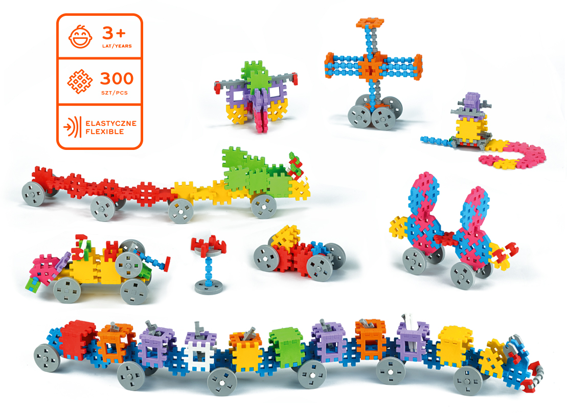 Dzięki nowej technologii produkcji, którą zastosowaliśmy klocki dają się wyginać oraz są ciche i bezpieczne w zabawie.