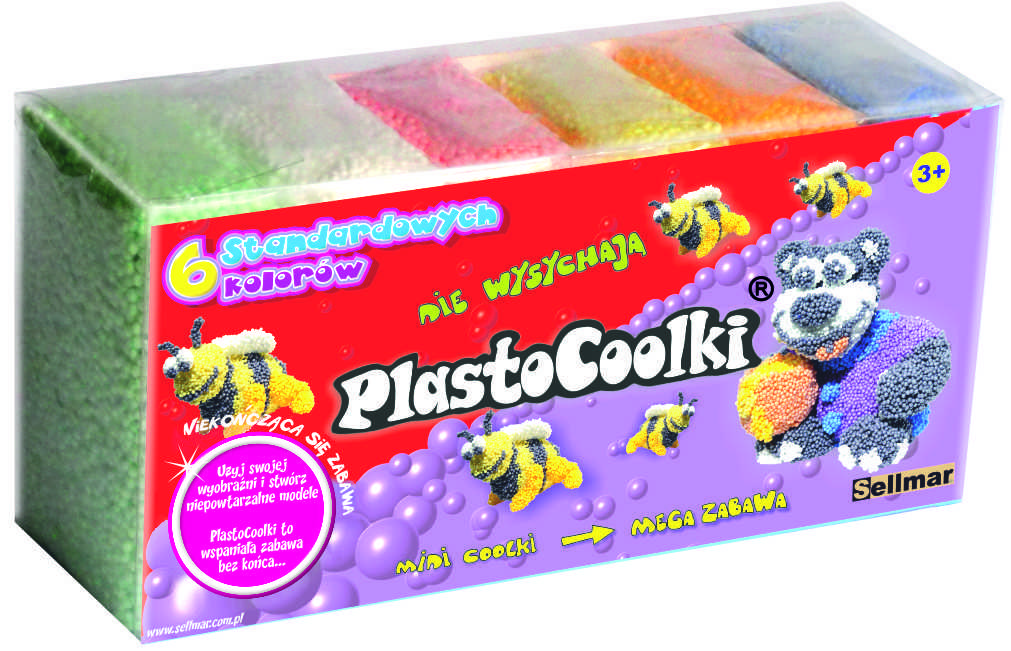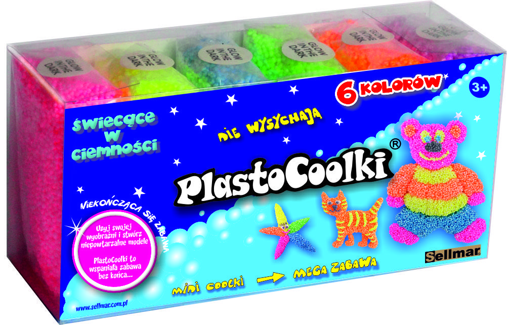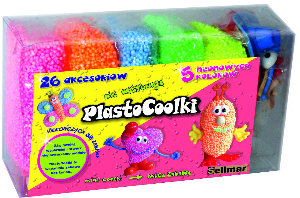 PlastoCoolki to bardzo lekka masa plastyczna przeznaczona do zabawy. Główną zaletą tego produktu jest to, że nigdy nie wysycha, nie klei się do rąk, nie brudzi i jest bezpieczny dla zdrowia. Pozwala na tworzenie dowolnych kształtów. W dostępnej gamie kolorów występują m.in. kolory świecące w ciemności.
