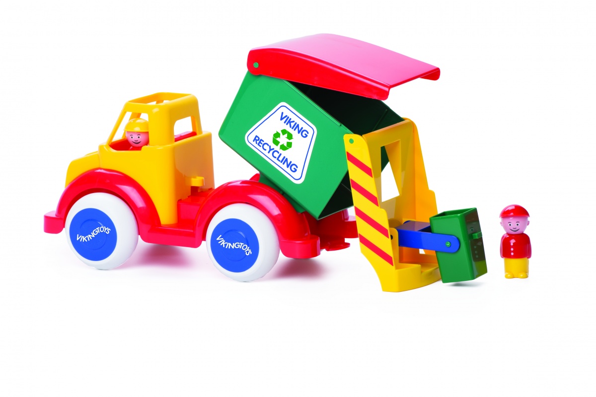 VIKING TOYS POJAZD SUPER JUMBO ŚMIECIARKA Z FIGURKAMI to pojazd o wielkości 35cm, zaprojektowany w Szwecji, w firmie która za priorytet stawia bezpieczeństwo swoich małych klientów. Pojazd jest wykonany z wysokiej jakości miękkiego plastiku, jest wytrzymały, a kółka wykonane z białego tworzywa są ciche i nie rysują powierzchni, można jego również myć w zmywarce. W zestawie poza pojazdem znajdują się 2 figurki.